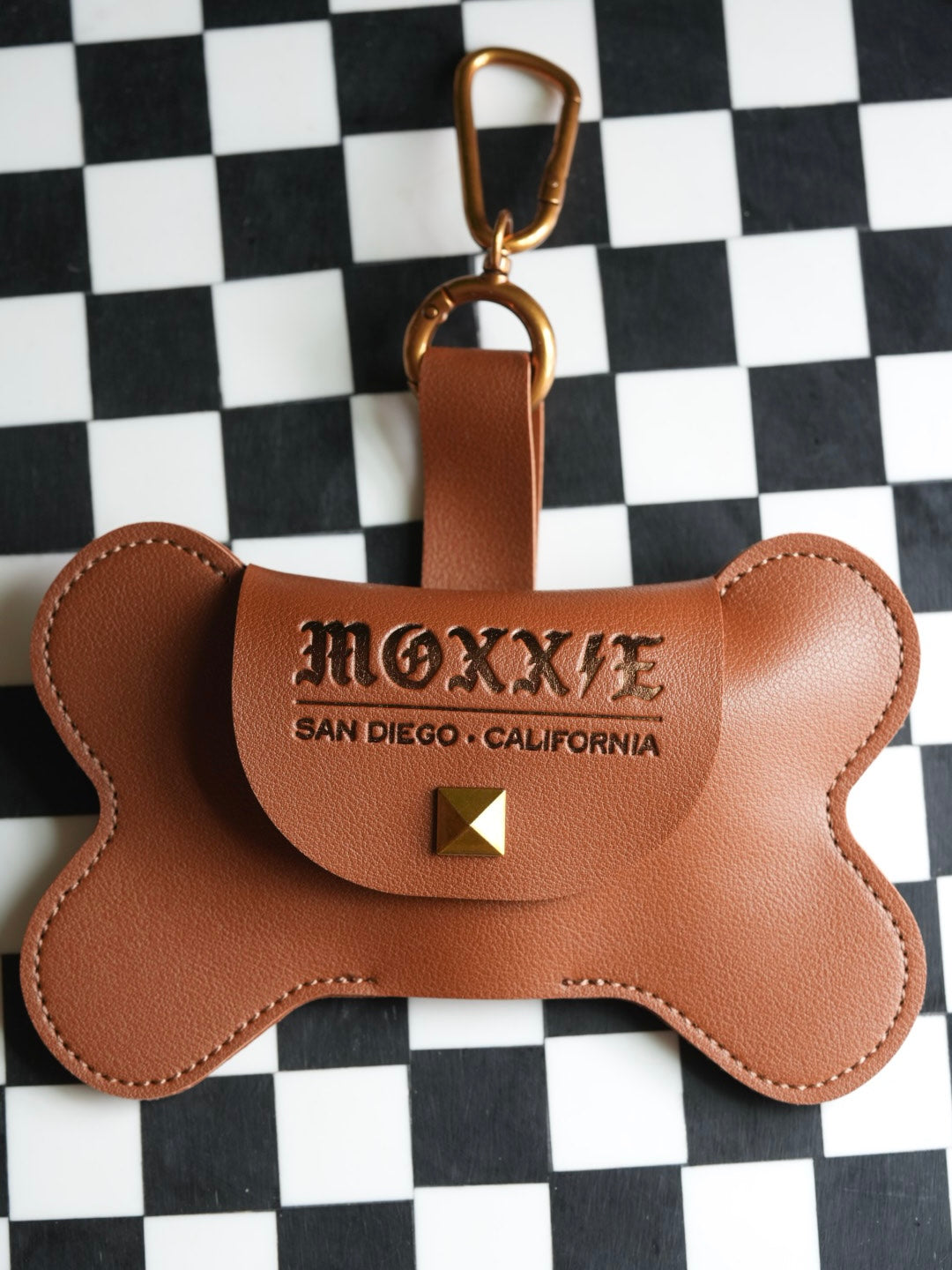 • Made with high quality Faux Leather Material, a custom Moxxie Punk button closures, with matching hardware/carabiner.