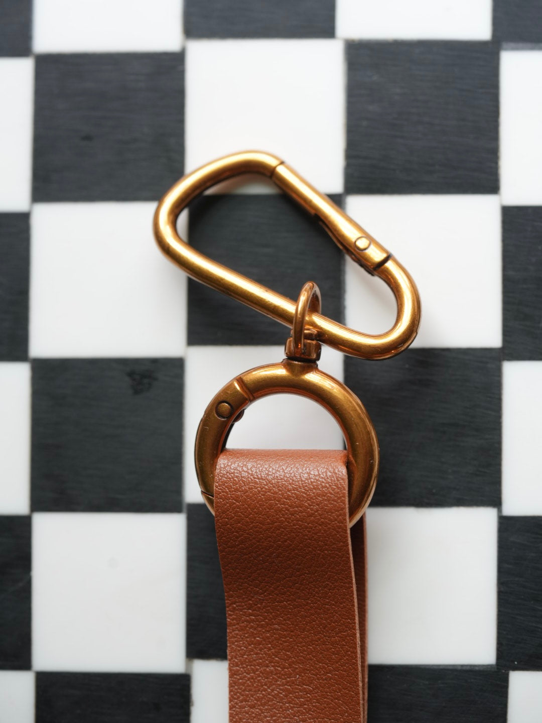 Close-up of the Moxxie White Leather Poop Bag Pouch’s durable matte black hook – perfect for easily attaching to your leash or purse!